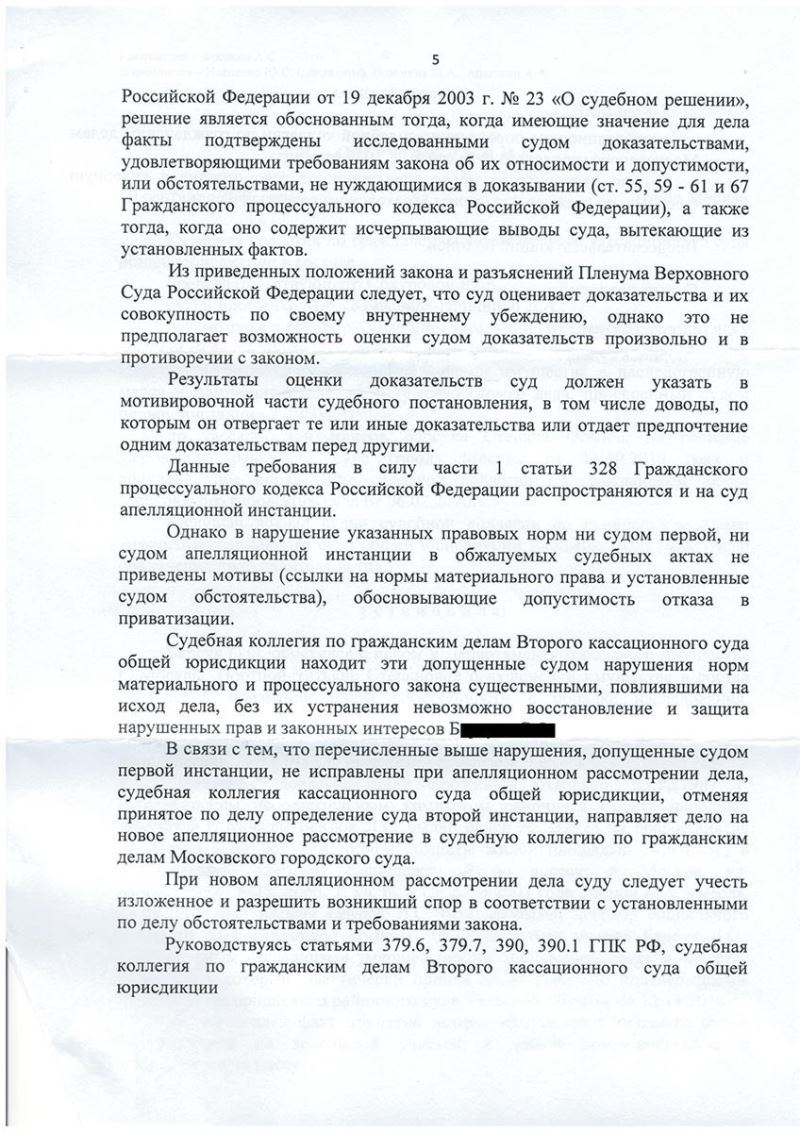 Подготовлена и подана мотивированная кассационная жалоба, которая содержала конкретные основания для отмены апелляционного постановления и повторного рассмотрения дела в Мосгорсуде. Представлены интересы клиента на трех судебных заседаниях в кассационном суде.