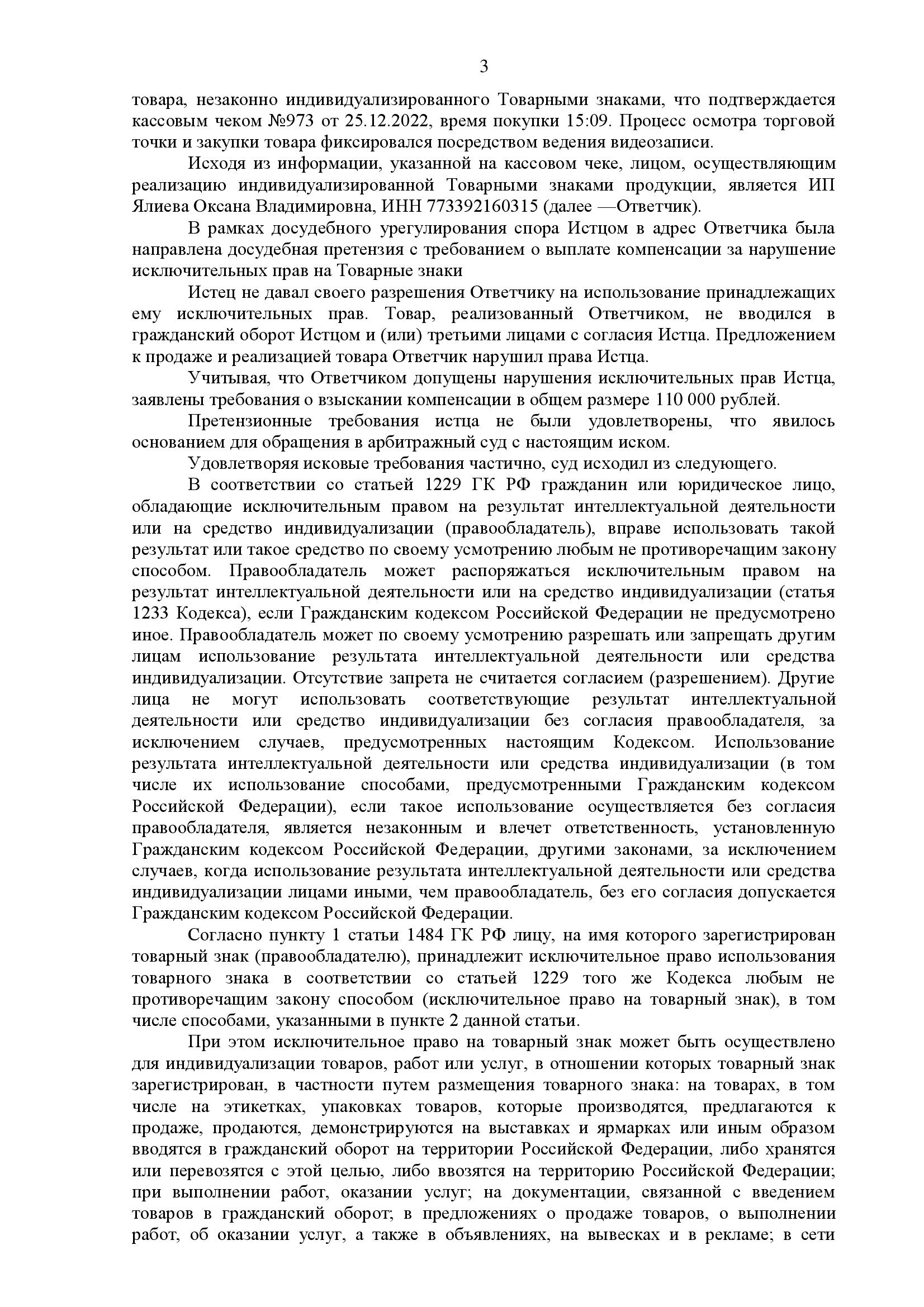 Также обращалось внимание на то, что заявленная сумма (110 000 руб.) многократно превышает стоимость товара и возможные убытки правообладателя.